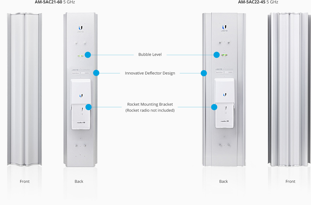 Точка доступа Ubiquiti AirMax AC Sector 5G-22-45-AC – антенное устройство от производителя оборудования Точка доступа Ubiquiti Networks используется для организации станций доступа Wi-Fi высокой мощности, базируясь на технологиях 2х2 MIMO PtMP. Разрабатывалась как поддержа к Rocket M5 AC, с целью повышения уровня качества связи при стандарте 802.ac. Частотный диапазон 5 ГГц исключительно хорошо взаимодействует в условиях местности повышенного значения шума на диапазоне 2.4 ГГц. Чтобы охватить сигналом зону на 360 градусов требуется 8 устройств. В случае параллельной эксплуатации точки Rocket M5 AC, в сумме устройство может показывать значение скорости передачи данных около 450 мбит/секунду. Что, несомненно, сравнительно высокое значение для подобных устройств соответствующей ценовой категории.